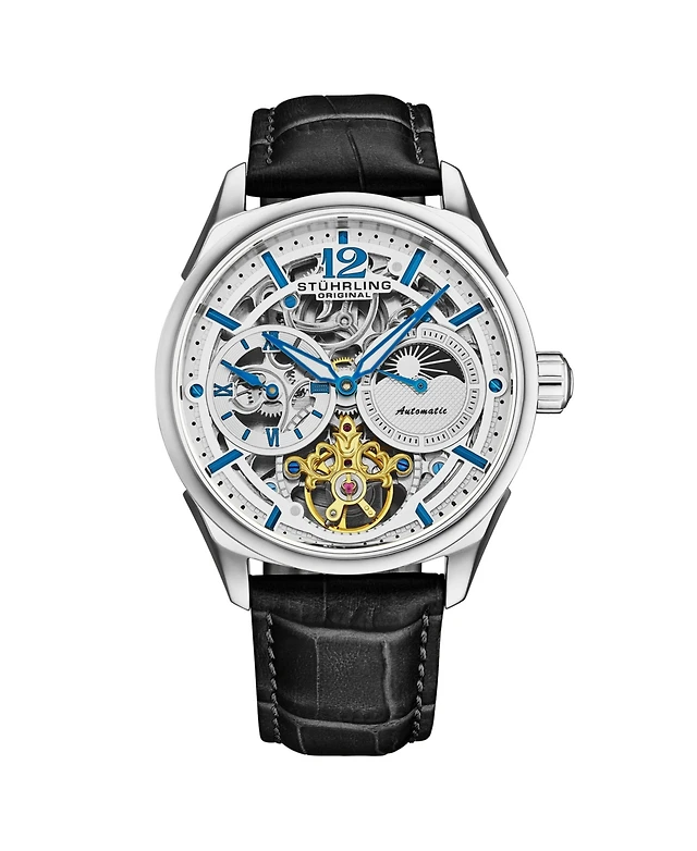 Stuhrling Datemaster Ii Men s Swiss Automatic 42mm Stainless Steel Watch, Silver Dial, Fluted Bezel, Day & Date, 100M Water Resistant