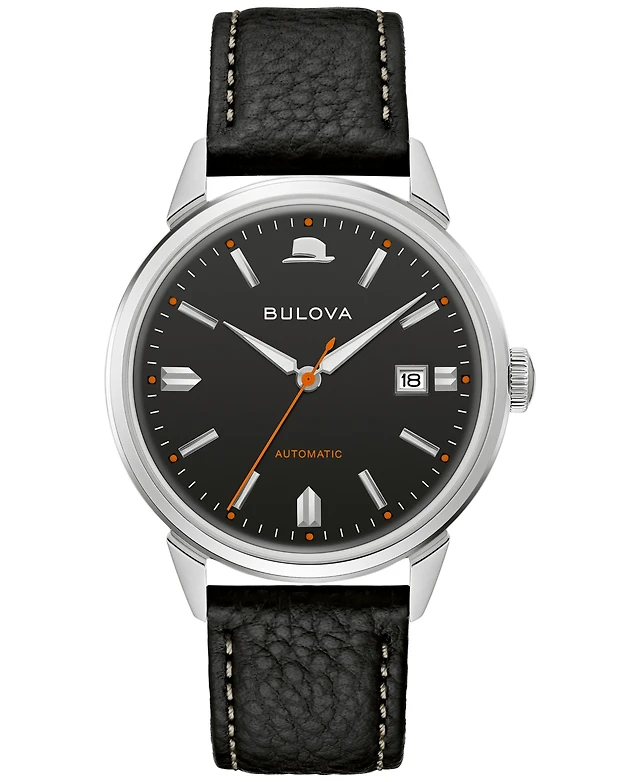 Bulova Men's Frank Sinatra Summer Wind Automatic Black Leather Strap Watch 40mm