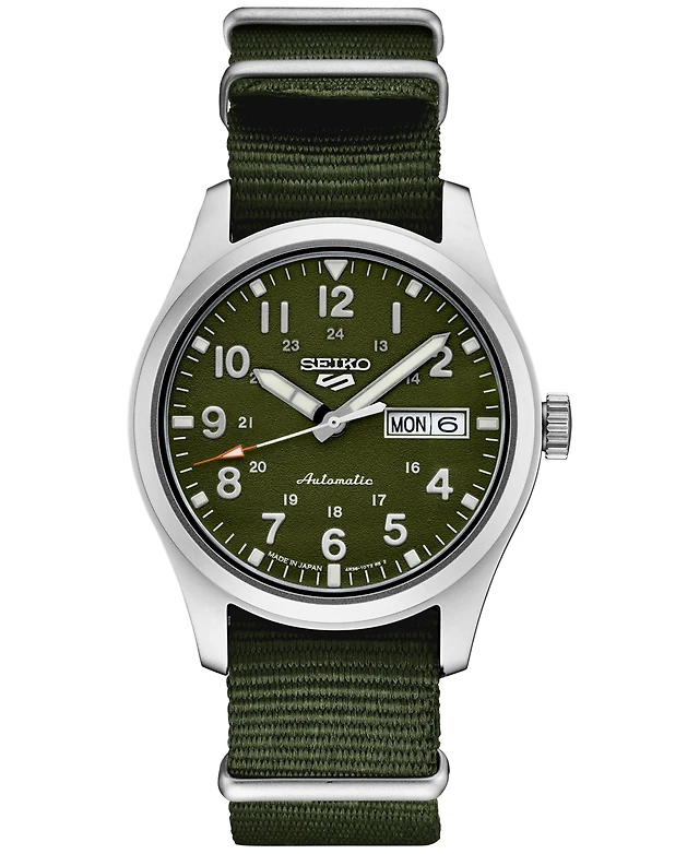 Seiko Men's Automatic 5 Sports Green Nylon Strap Watch 39mm