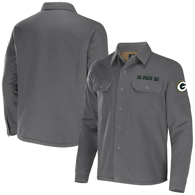 Men's NFL x Darius Rucker Collection by Fanatics Gray Green Bay Packers Canvas Button-Up Shirt Jacket