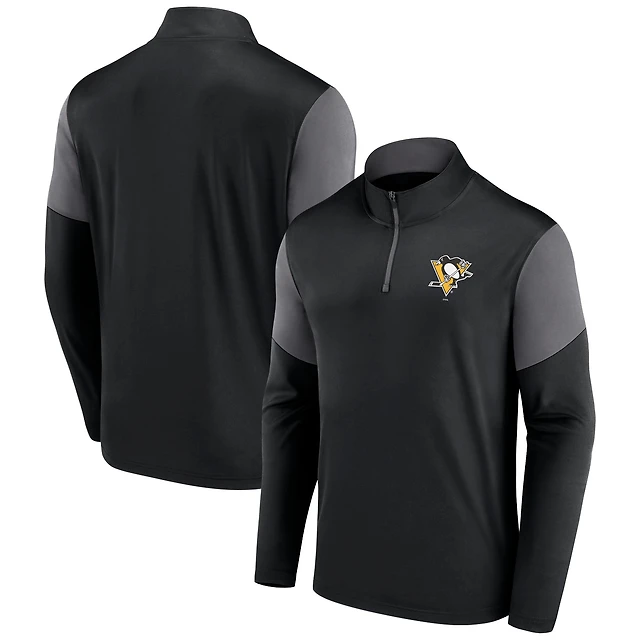 Men's Fanatics Black Pittsburgh Penguins Logo Quarter-Zip Top