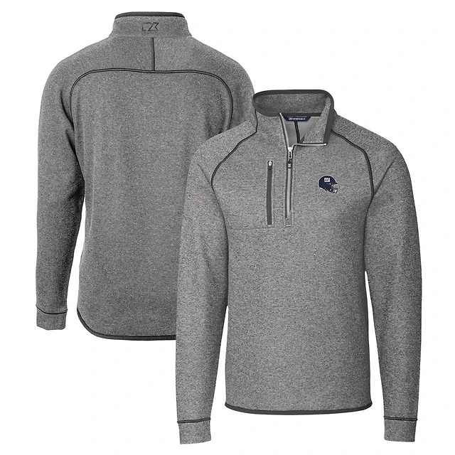 Men's Cutter & Buck Navy Buffalo Bills Helmet Lakemont Tri-Blend Quarter-Zip Pullover Sweater