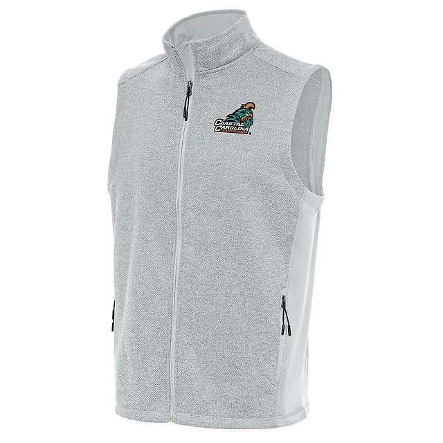 Men's Antigua Gray Coastal Carolina Chanticleers Course Full-Zip Vest