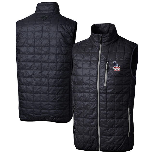 Men's Cutter & Buck Navy Los Angeles Dodgers Big & Tall Rainier PrimaLoft® Eco Insulated Full-Zip Puffer Vest