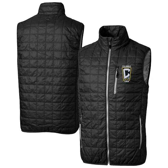 Men's Cutter & Buck Black Columbus Crew Rainier PrimaLoft Eco Insulated Full-Zip Puffer Vest