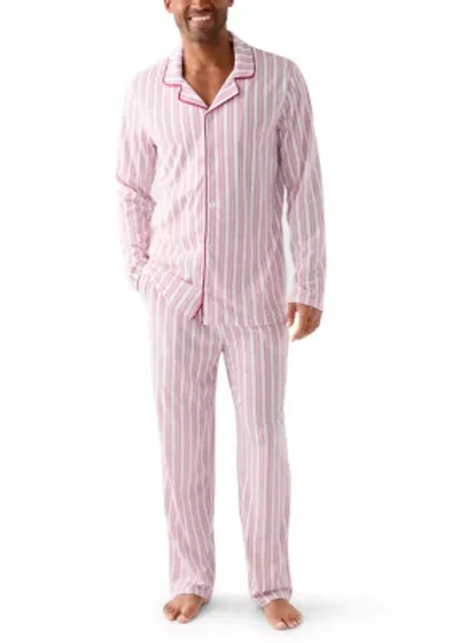 Roundtree & Yorke Long-Sleeve Pajama Top & Matching Pajama Pants Set