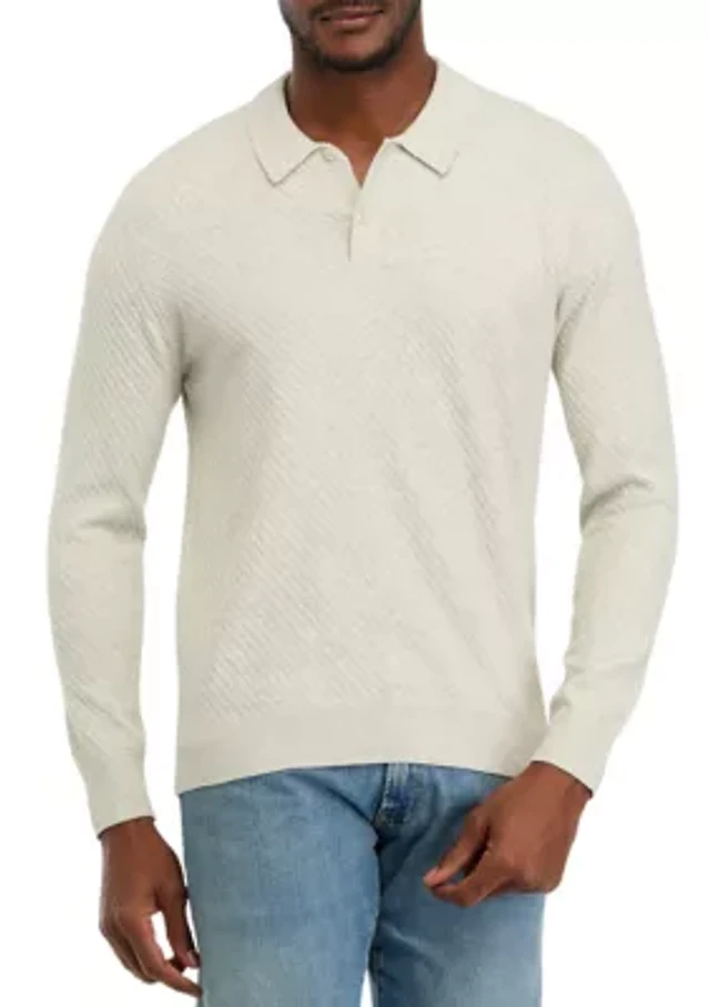 Men's Long Sleeve Stripe Rugby Polo Shirt