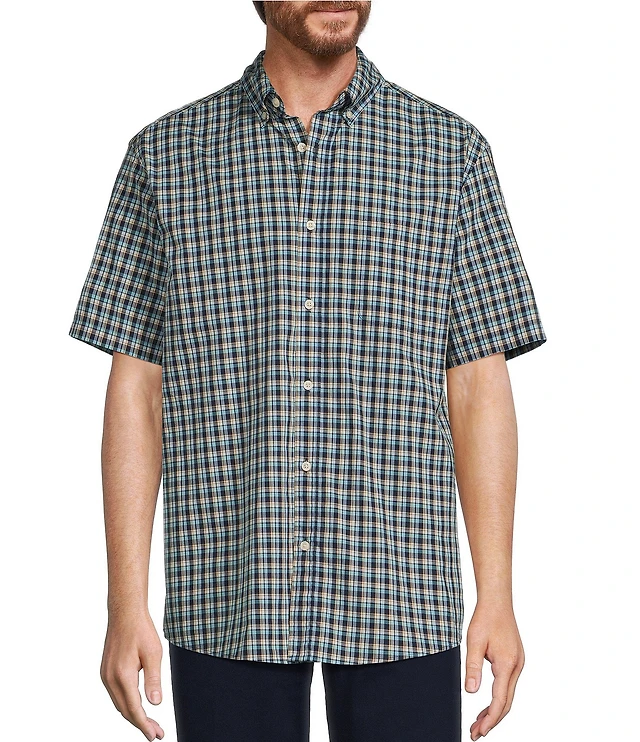 Roundtree & Yorke Short Sleeve Mini Multi-Plaid Poplin Sport Shirt