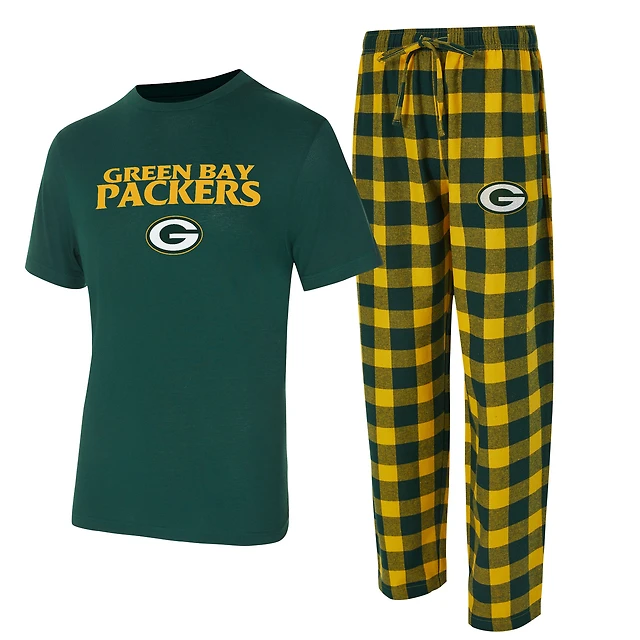 Men's Concepts Sport Green/Gold Green Bay Packers Big & Tall Avondale T-Shirt & Flannel Pants Sleep Set