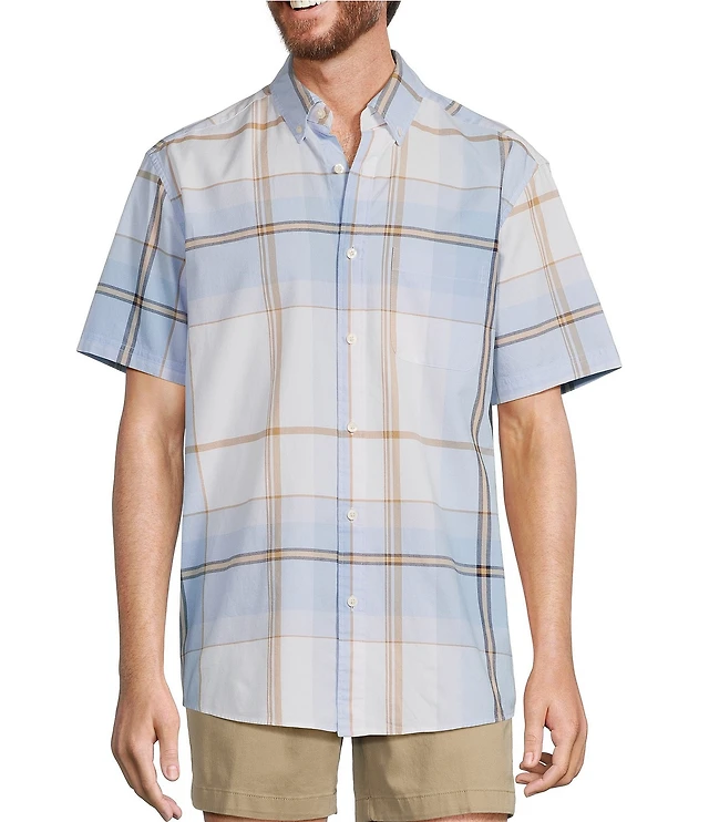 Roundtree & Yorke Short Sleeve Slub Large Plaid Sport Shirt