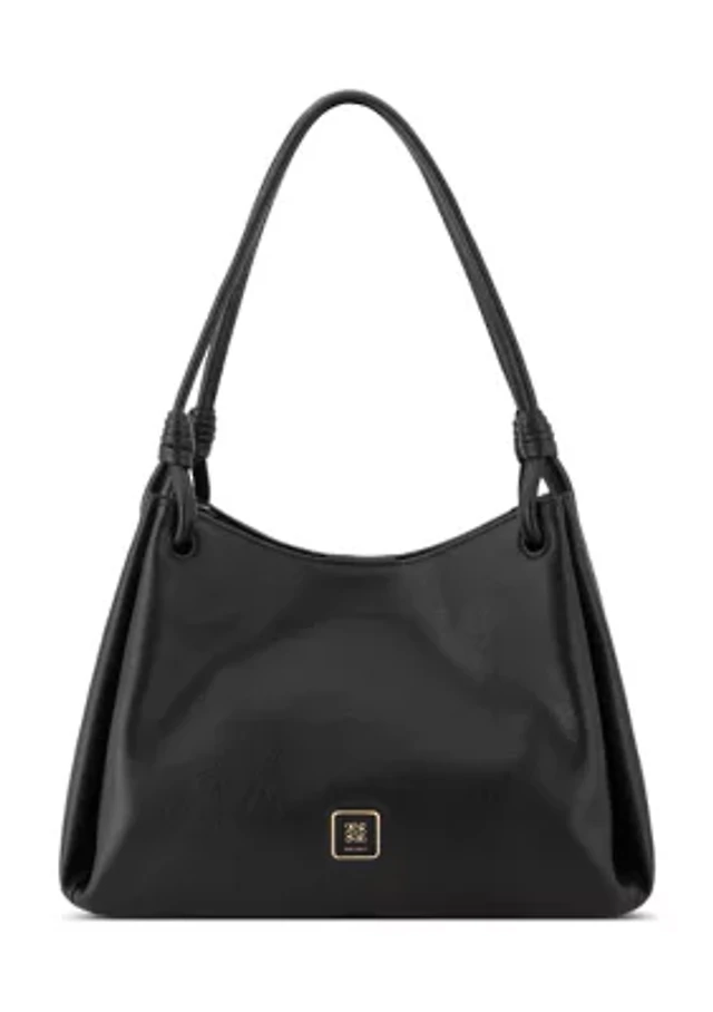 Nubuck Studded Trim Triple Entry Bucket Crossbody
