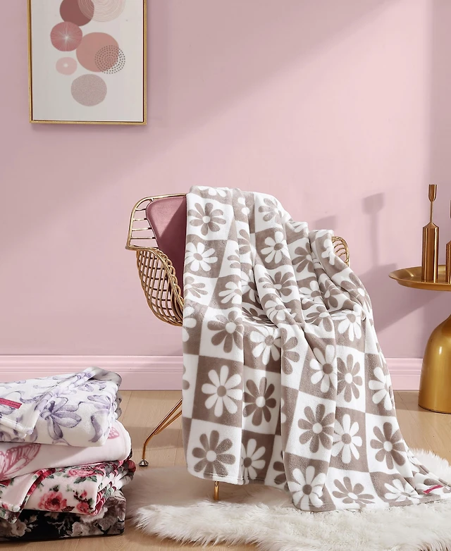 Betsey Johnson Daisy Check Ultra Soft Plush Fleece Throw, 70" X 50"
