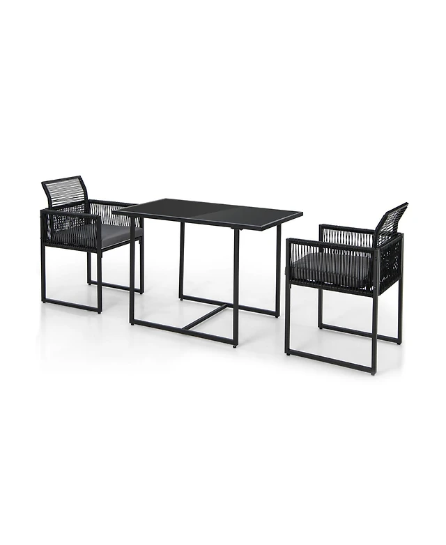 3 Pieces Outdoor Rattan Furniture Set with Cushions and Tempered Glass Table