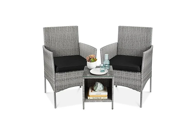 Gymax Patented Cushioned Rattan Wicker Patio Conversation Set Loveseat Table