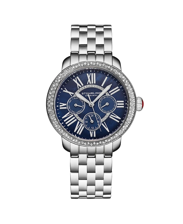 Stuhrling Serafine Women's Rectangular Quartz Watch, Two-Tone Case, Mother-of-Pearl Dial & Swarovski Crystal Bezel