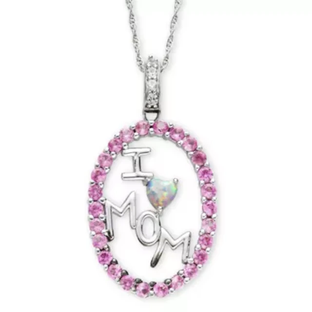 Mom" Womens Lab Created White Opal Sterling Silver Heart 18 Inch Pendant Necklace