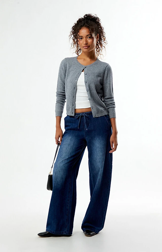 Denim Crew Neck Blazer Vest