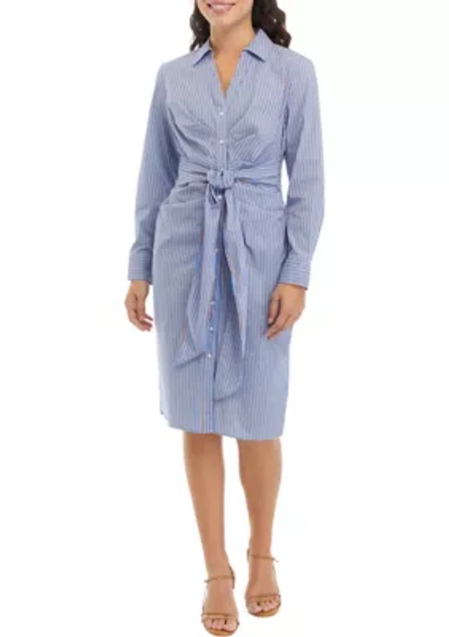 Petite Striped Tied Long Sleeve Shirtdress