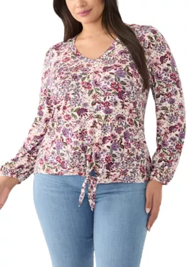 Petite Vintage Floral Tie Front Henley T-Shirt