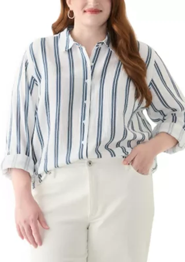 Plus Classic Striped Button Down Top