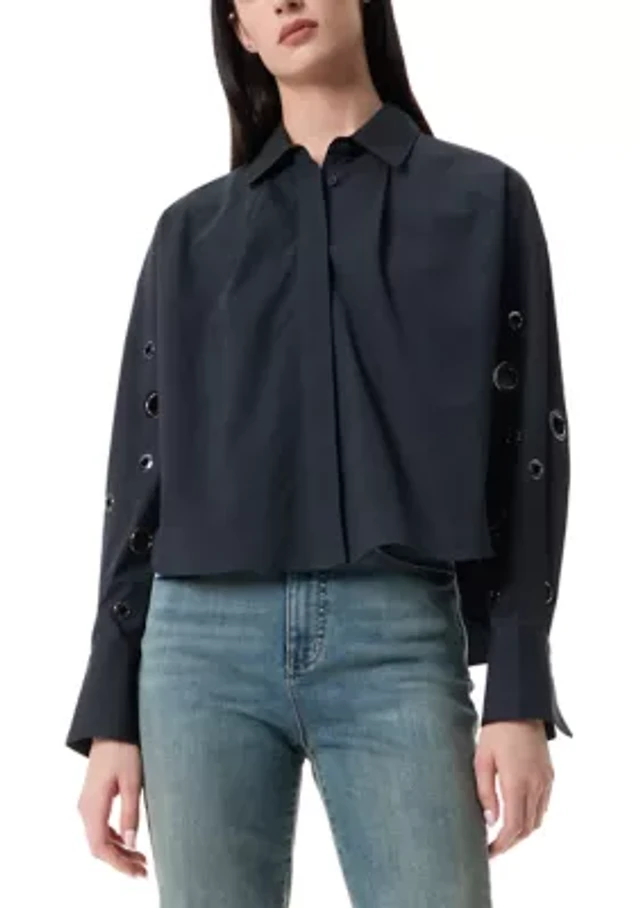 Petite Long Sleeve Button Down Lace Top