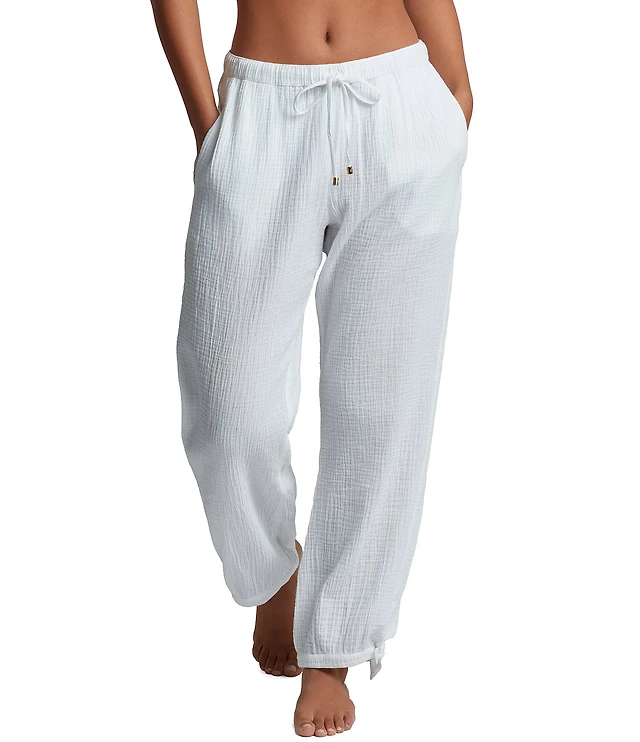 Lauren Ralph Lauren Bay Stripe Double Gauze Swim Cover-Up Ankle Tie Pants