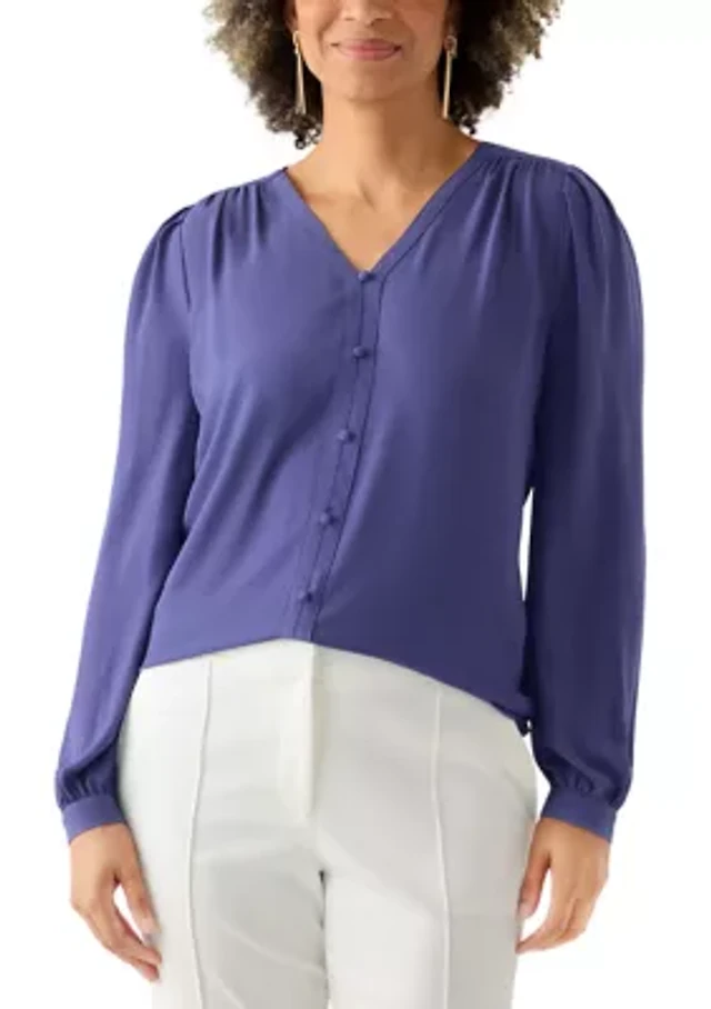 Anne Klein Two Button Long Sleeve Peak Lapel Triple Patch Pocket Blazer