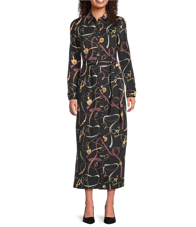 J.McLaughlin Armory Catiline Cloth Point Collar Button Front Long Sleeve Self-Tie Midi Shirt Dress