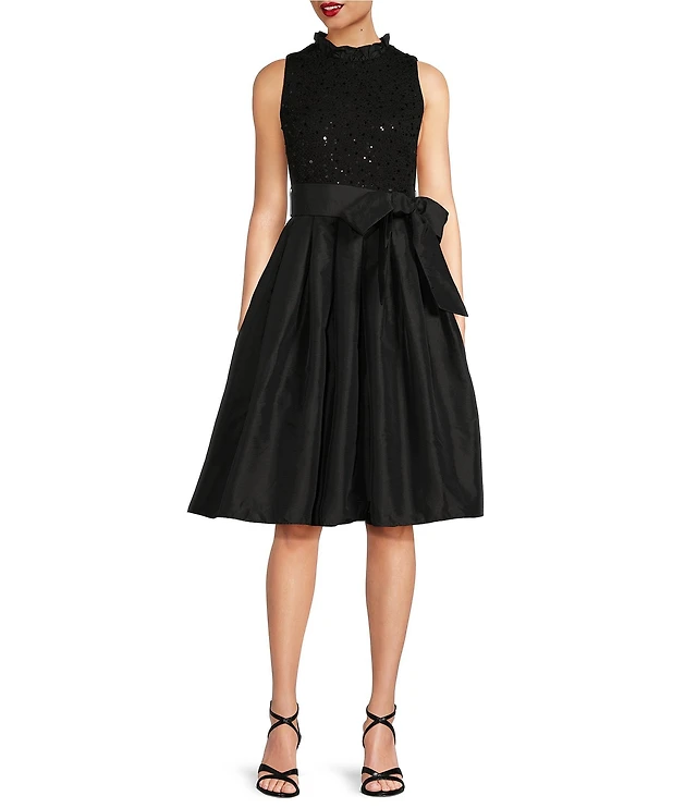 Maggy London Color Block Scuba Crepe Mock Beck Long Sleeve Self-Tie Belt A-Line Midi Dress