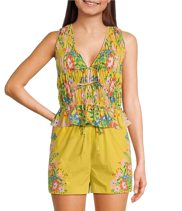 Angie Sleeveless V-Neck Floral Triple Tie Top