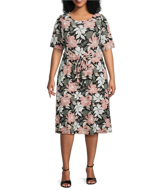 FRANCES VALENTINE Eve Sketchy Jungle Print Point Collar Short Sleeve Tie Waist Midi Dress