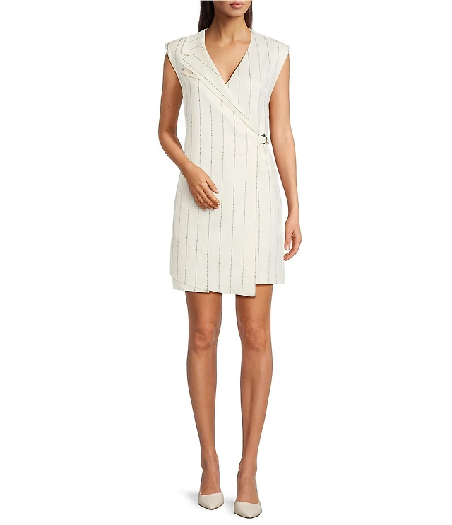 BOSS by Hugo Boss Dagania Pinstripe Linen Blend V-Neck Sleeveless Wrap Dress