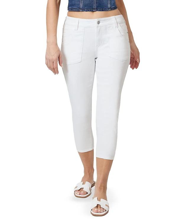 Multiples Petite Size Stretch Denim Wide Waistband Triple Fringe Hem Pull-On Jeans