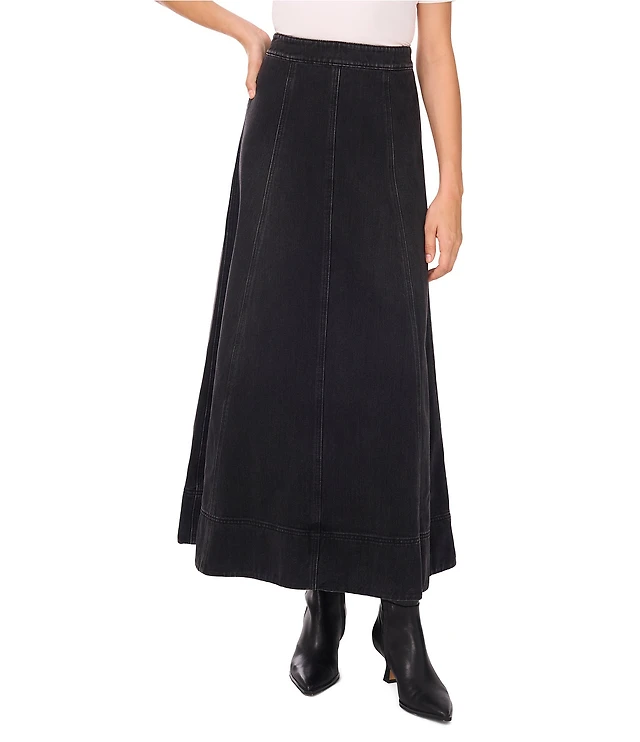 A Loves A Pinstripe Woven Mid Rise Drop Waist A-Line Bubble Hem Coordinating Midi Skirt