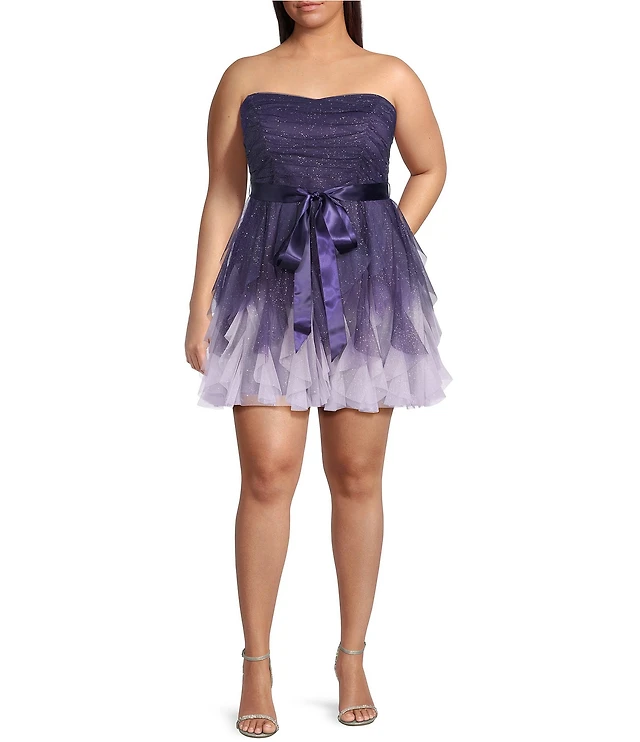 Honey and Rosie Glitter Knit Strapless Tiered Lace Up Tie Back Fit And Flare Dress