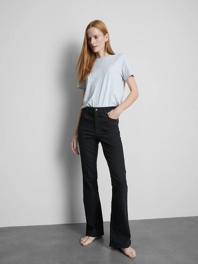 Cotton Denim Mid Rise Flared Jeans
