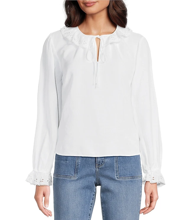 Honey & Sparkle Eyelet Short Sleeve Tie Front Blouse