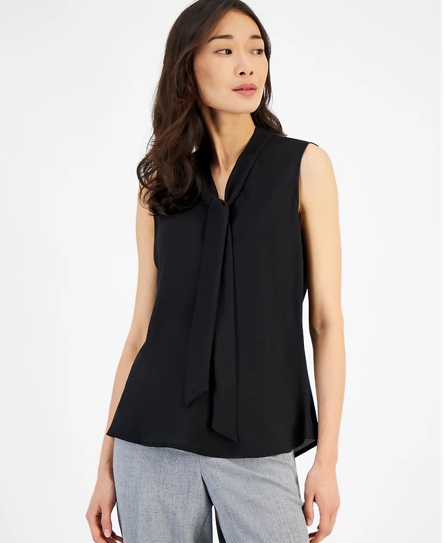 Tommy Hilfiger Women's Sleeveless Striped Tie V-Neck Blouse