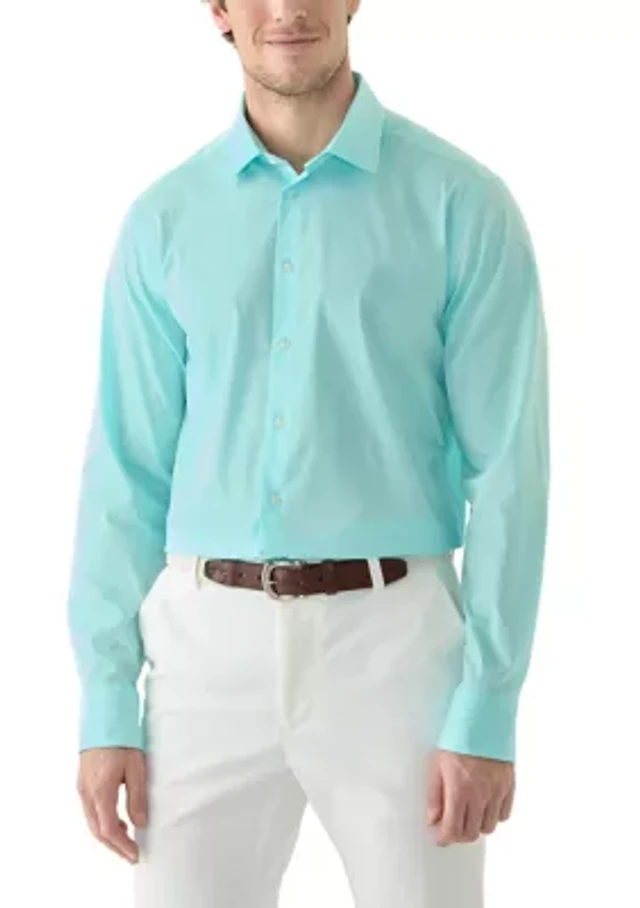 Men's Slim Fit White Solid Performance Stretch Dress Shirt