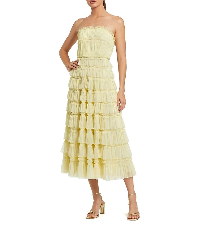 Steve Madden Caspia Solid Satin Halter Neck Asymmetrical Ruffle Midi Dress