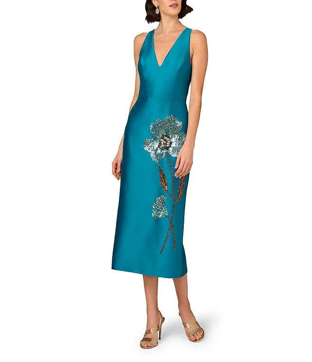 Adrianna Papell Soutache Embroidered Sleeveless V-Neck A-Line Gown