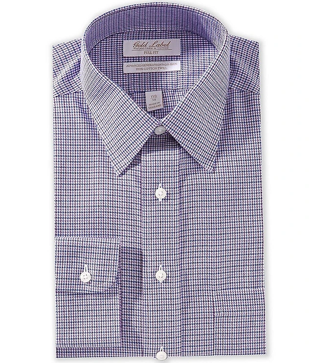 Gold Label Roundtree & Yorke Garrett Full Fit Non-Iron Point Collar Houndstooth Checked Dress Shirt