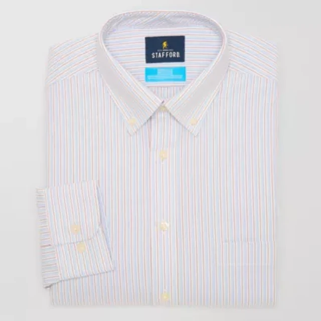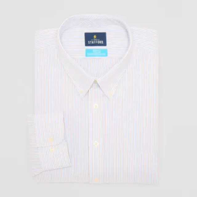 Stafford Coolmax Oxford Mens Big & Tall Regular Fit Long Sleeve Stripe Dress Shirt