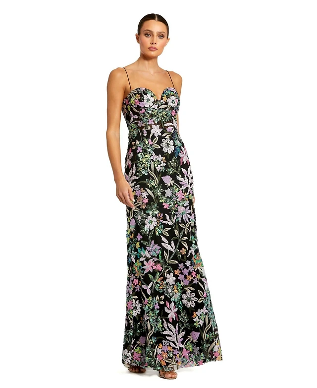 Mac Duggal Women's Sequined Long Sleeve Side Knot Gown