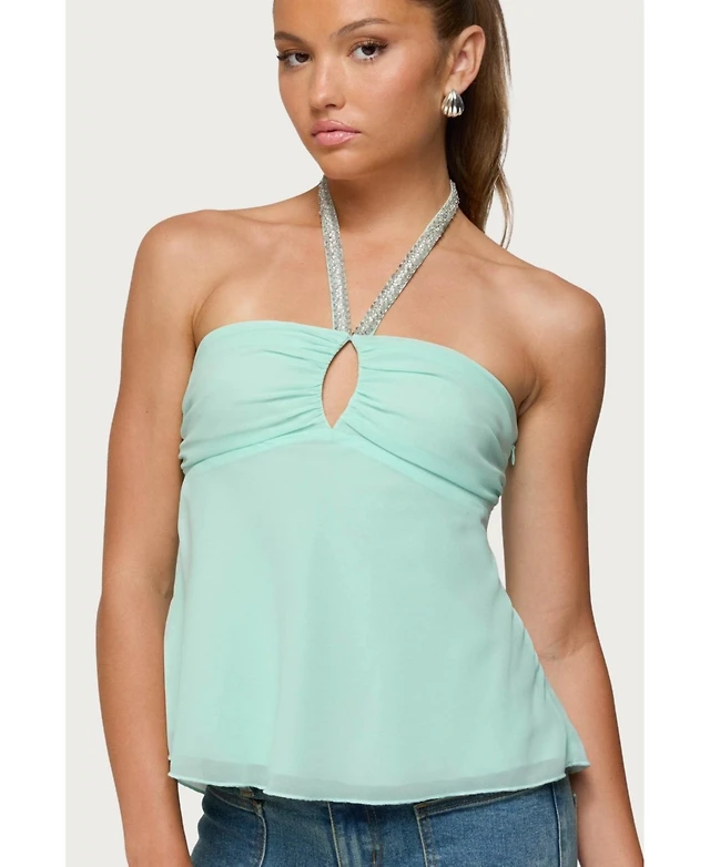 Edikted Women's Sequin Chiffon Keyhole Halter Top