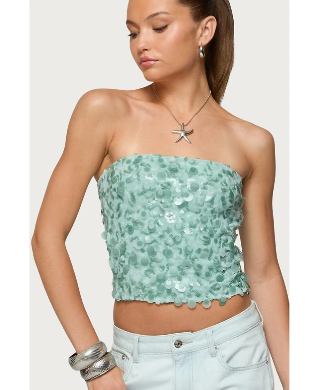 Edikted Womens Brynn Sequin Strapless Top