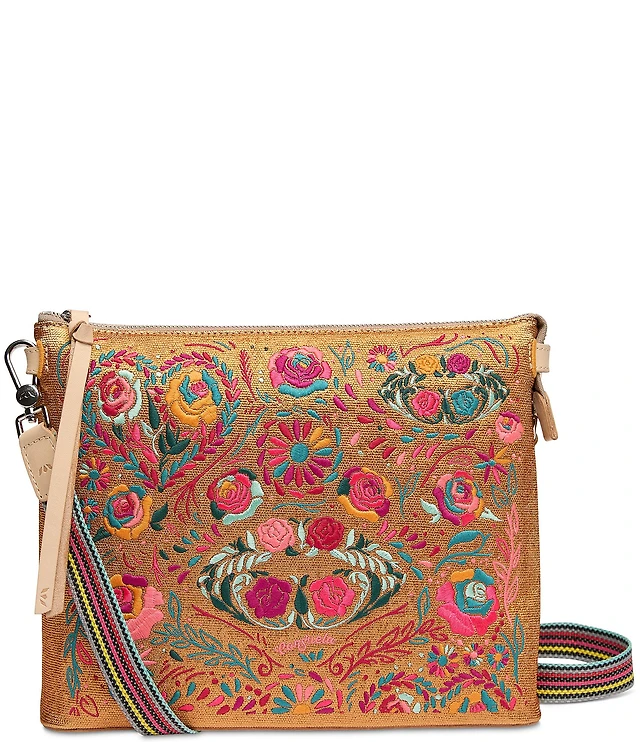 Consuela Bronzer Downtown Embroidered Metalllic Floral Crossbody Bag
