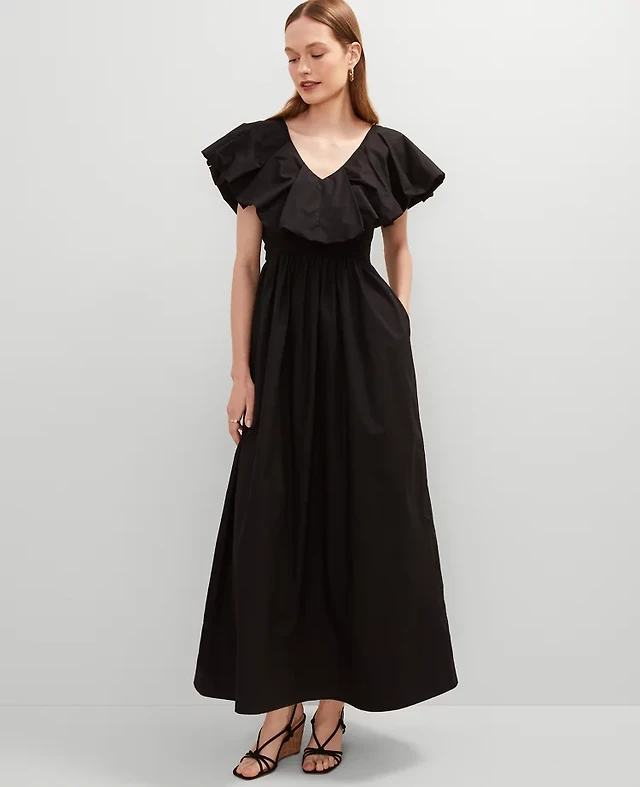 Ann Taylor Petite Crossover Collared Midi Shirtdress Black Women's