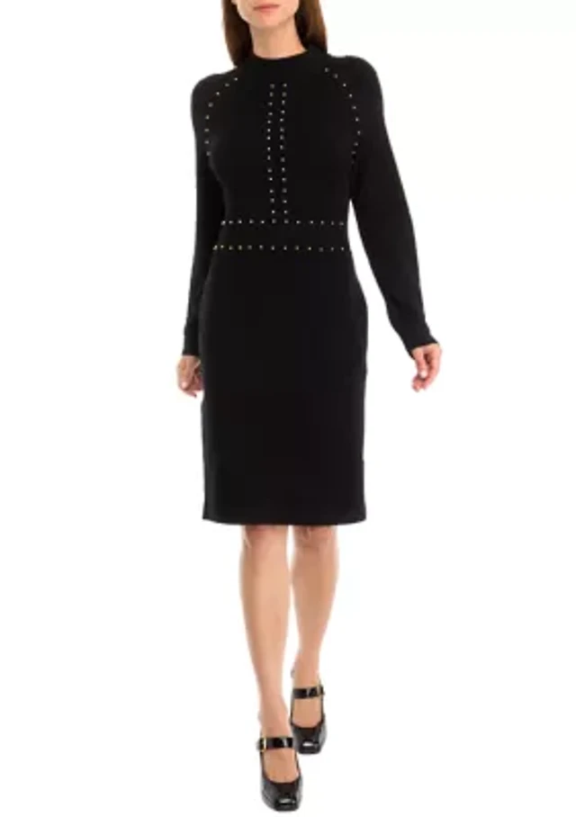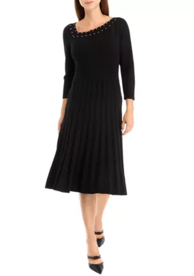 Petite Women's Sleeveless Pointelle Crew Neck Sweater