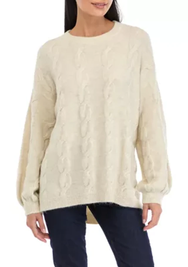 Petite Long Sleeve Asymmetrical Neck Ribbed Sweater